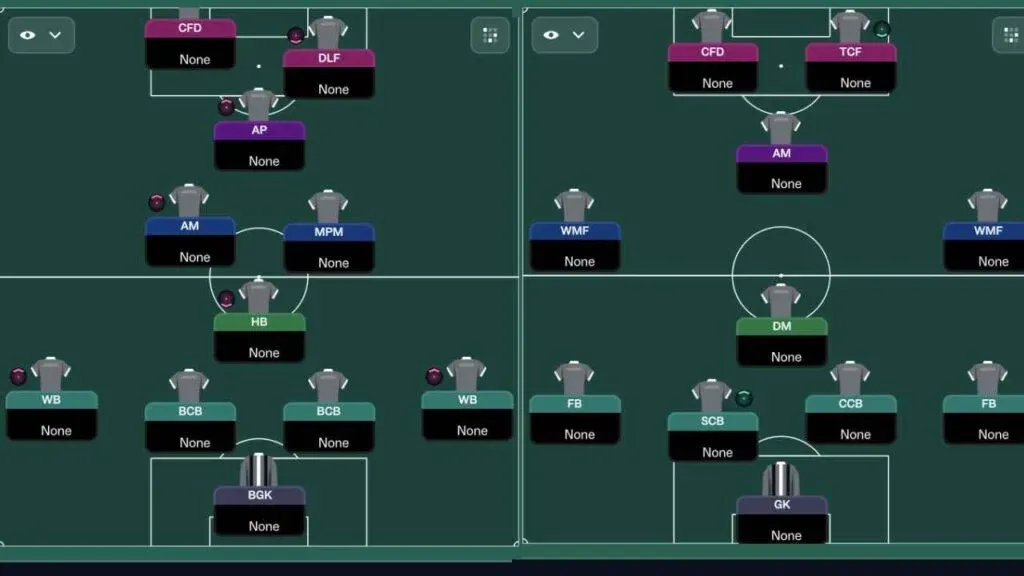 Quello che ho fatto io è prendere la logica meta (overload, dribbling, pressing alto, qualità dei tiri) e trasformarla in due preset pronti per squadre piccole: una strikerless aggressiva e una 4-2-3-1 più stabile. Con ruoli, compiti, istruzioni e micro-dettagli già allineati. Questo è il pezzo che ti manca: i dati, non la filosofia.